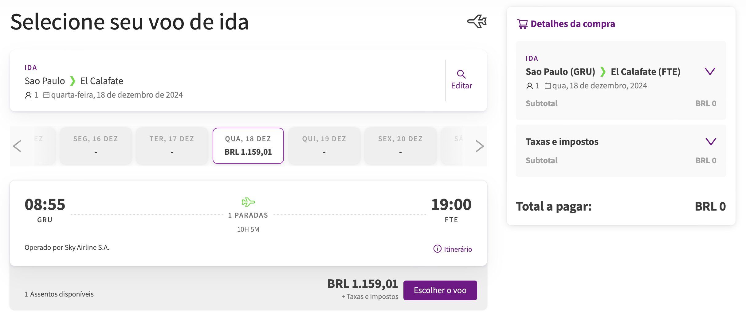 Os bilhetes para a nova operação já estão disponíveis para compra no site oficial da Sky Airline, como você pode ver abaixo: