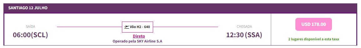 A venda das passagens já foi iniciada no site da SKY Airline e essa emissão também já pode ser feita com milhas Smiles. Veja abaixo um exemplo de emissão pelo site da SKY Arline: