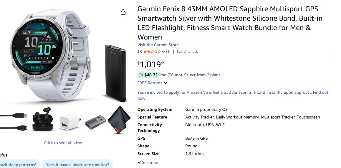 - Smart Watch Garmin Fenix | total U$1.019,99 – compre aqui
