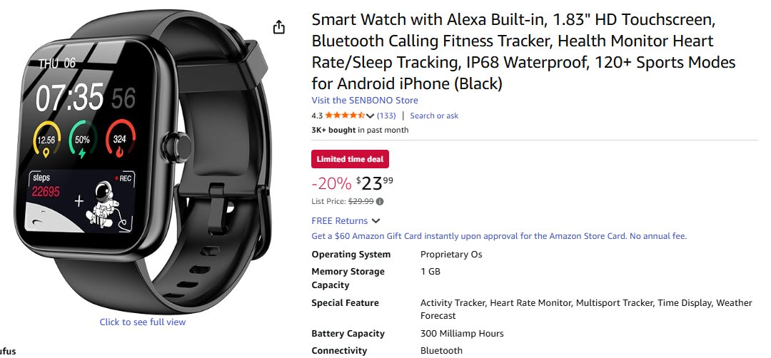 - Smart Watch with Alexa| 20% de desconto – total U$23,99 – compre aqui