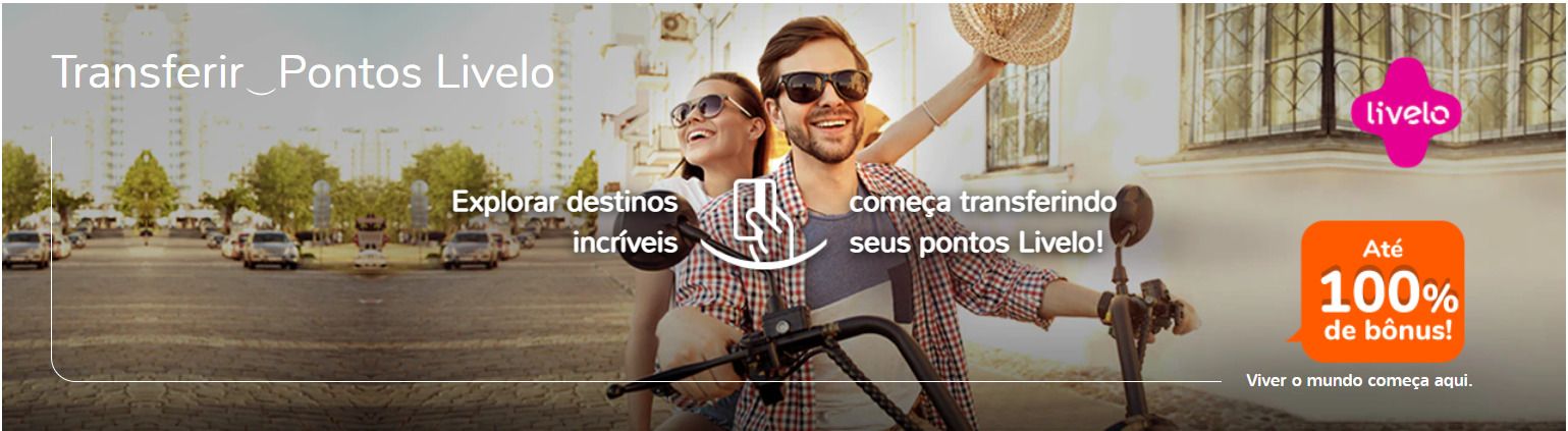 - 100% de bônus: assinantes do Clube Livelo ou assinantes do Clube Smiles ou clientes Diamante;