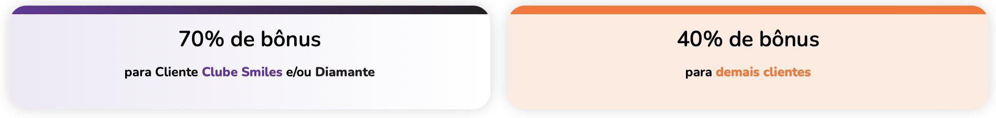 • 70% de bônus: assinantes do Clube Smiles e/ou clientes Diamante;
