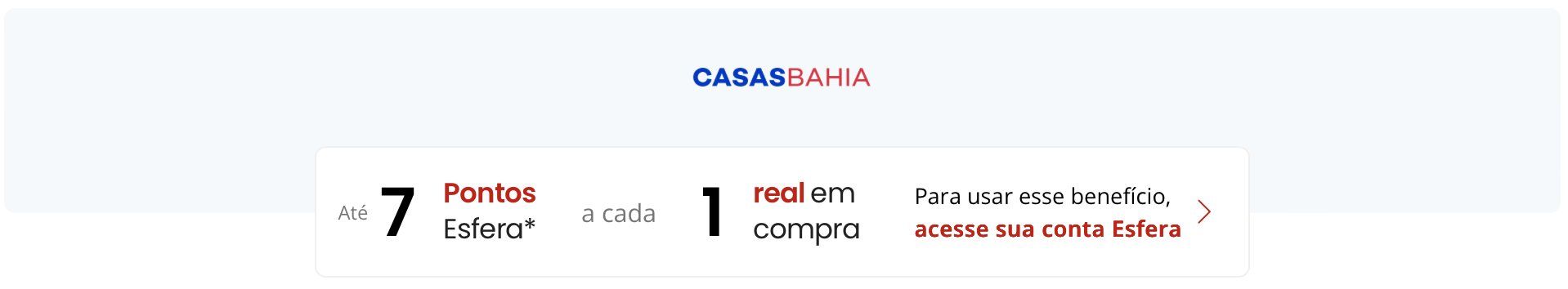 - O acúmulo de pontos é válido para produtos vendidos e entregues por Casas Bahia;