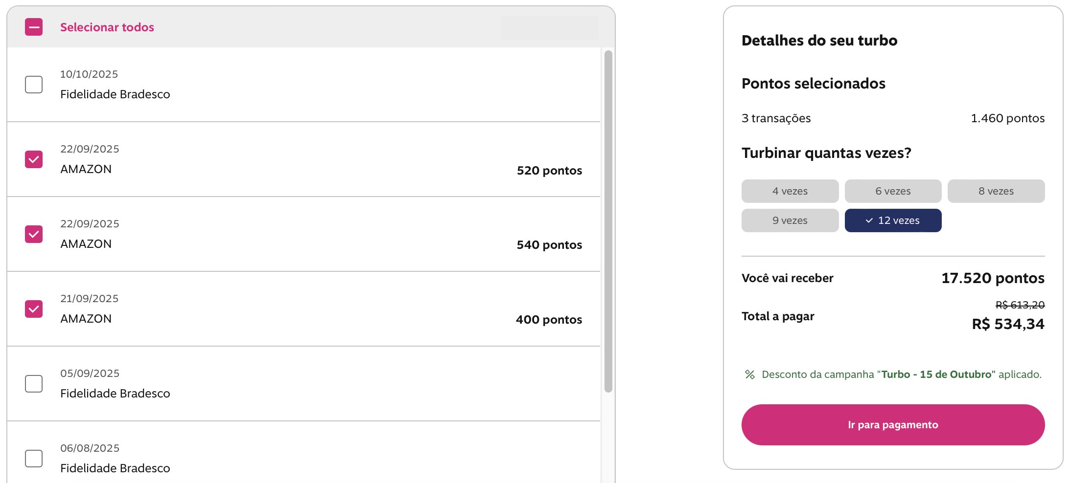 Exemplo de como turbinar seus pontos