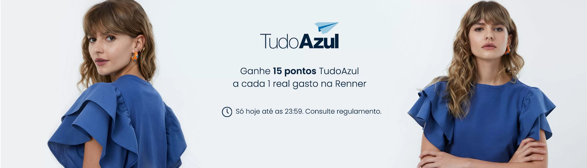 O TudoAzul está oferecendo 15 pontos por real gasto na Renner. A oferta – válida somente nesta terça-feira (18) – contempla todos os itens do site com pagamentos feitos pelo cartão de crédito ou boleto bancário.