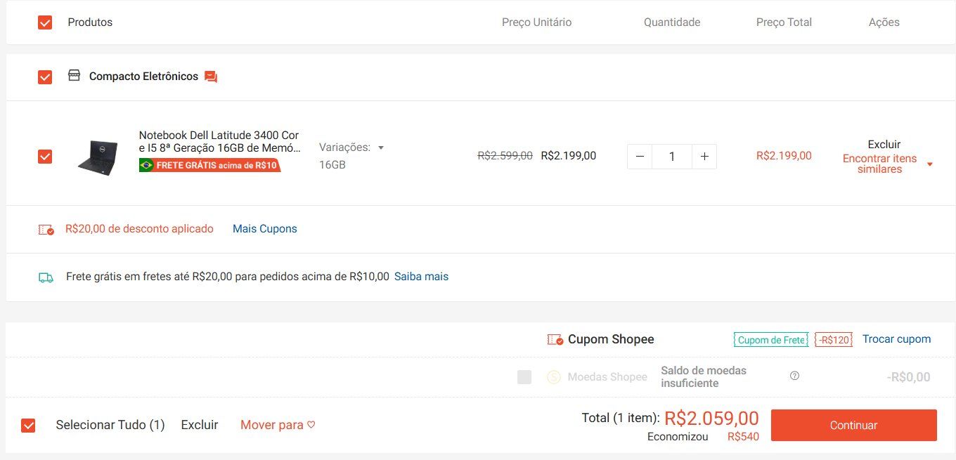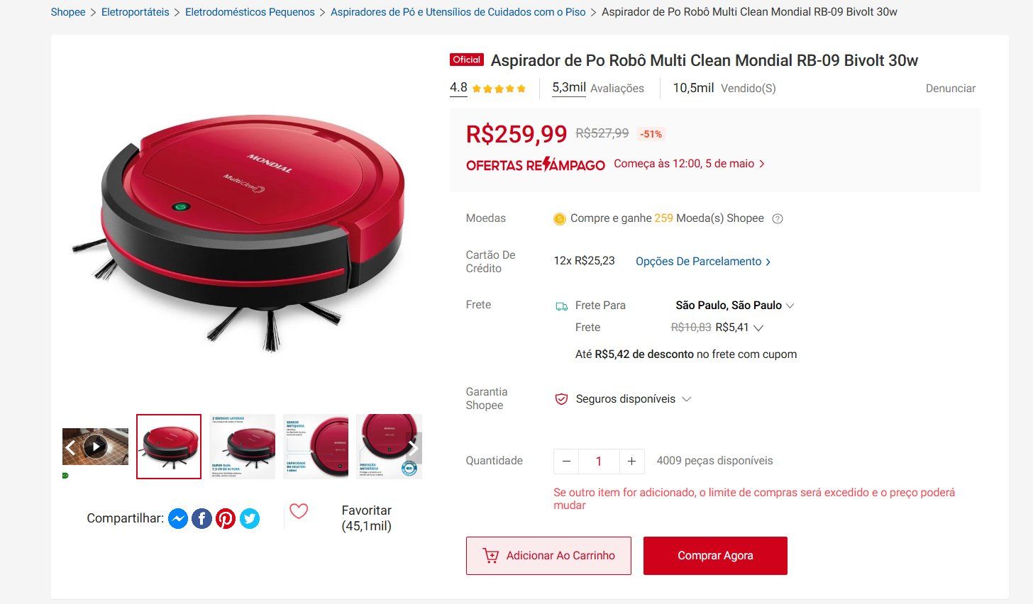 Note que, durante o processo de compra, não é indicada a quantidade de pontos que será acumulada ao adquirir um produto na Shopee.