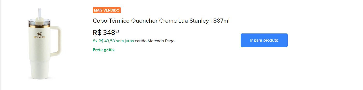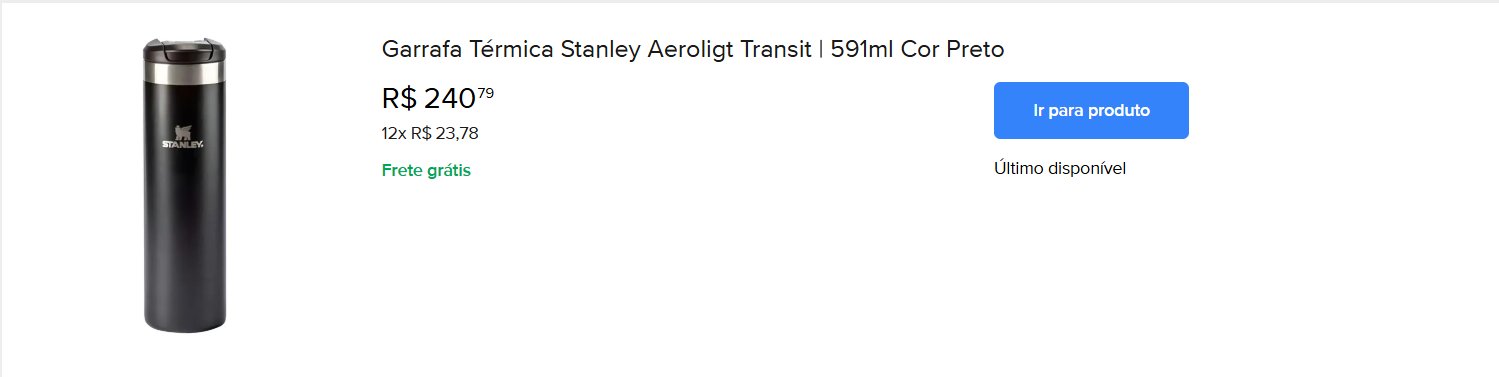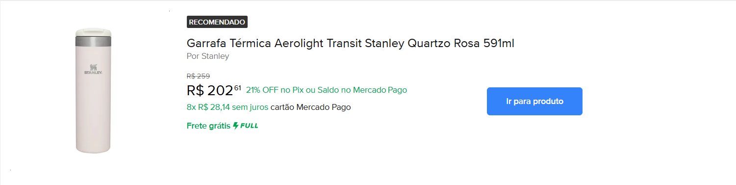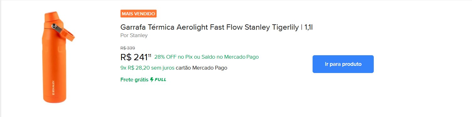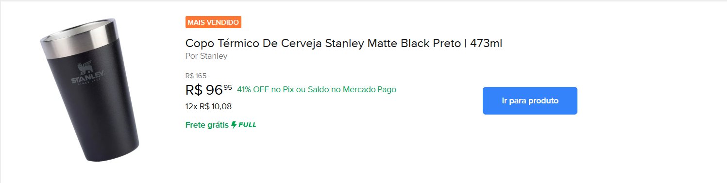 O Mercado Livre está com diversas ofertas e, entre elas, itens Stanley com até 41% de desconto! Mas fique atento porque os produtos podem se esgotar a qualquer momento. Confira!
