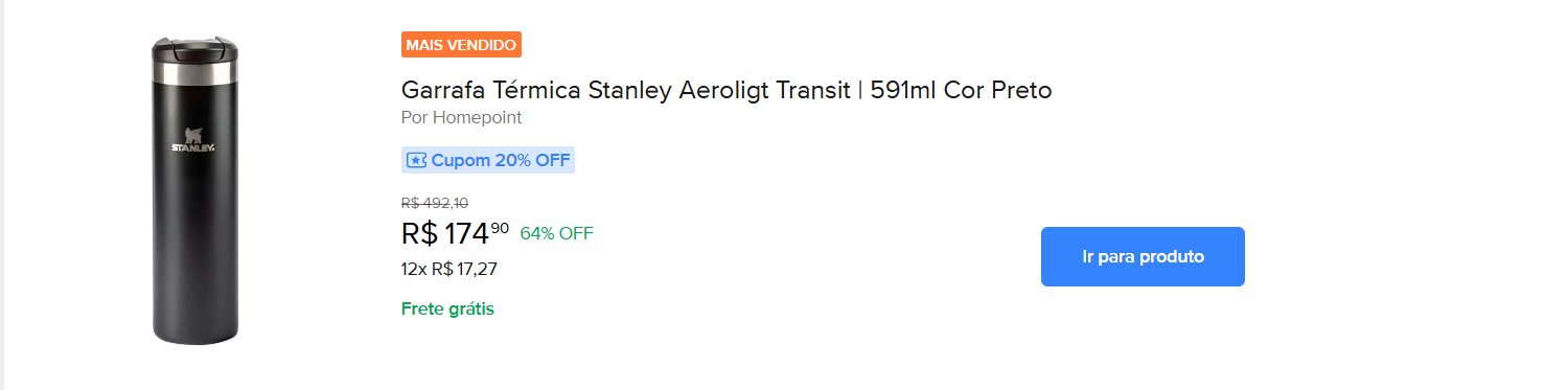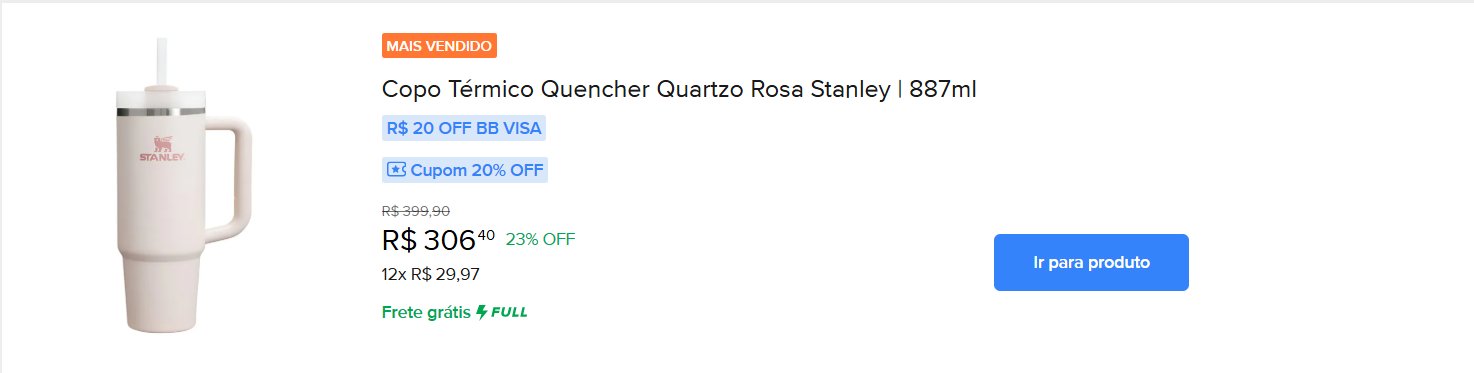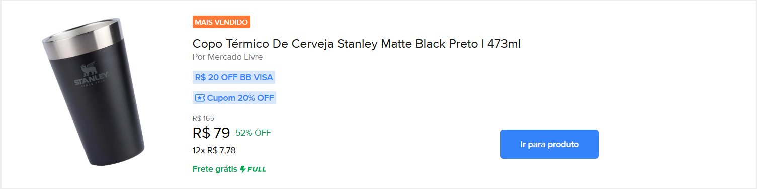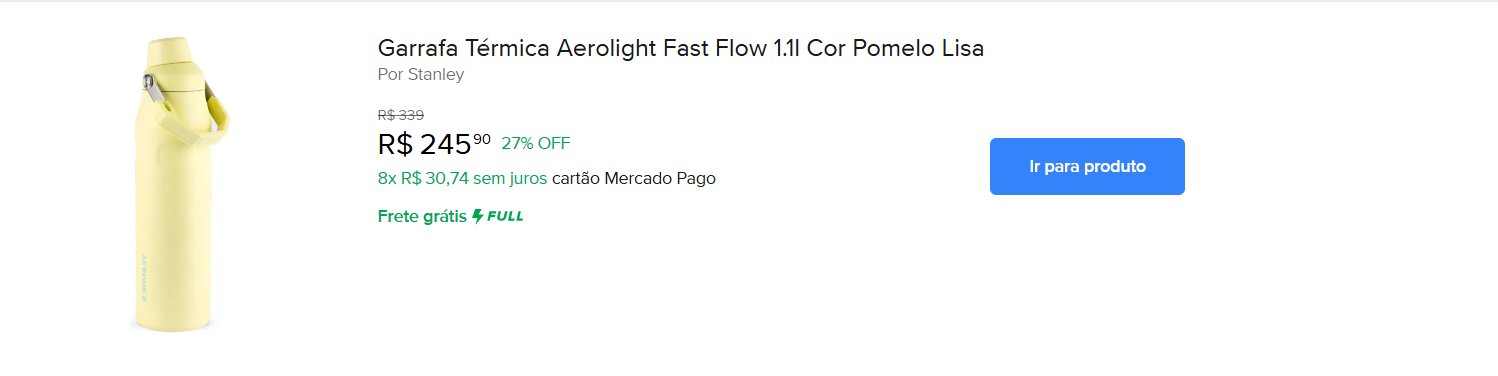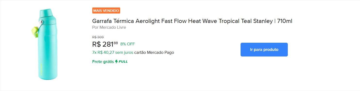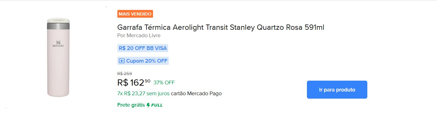 O Mercado Livre está com diversas ofertas e, entre elas, itens Stanley com até 64% de desconto! Mas fique atento porque os produtos podem se esgotar a qualquer momento. Confira!