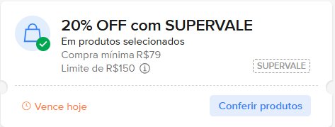 - 20% off, chegando até R$ 150 de desconto, em compras a partir de R$ 79, com o cupom ‘SUPERVALE’ [sem aspas]