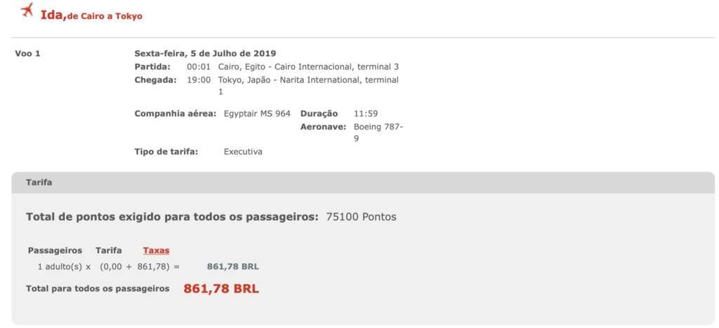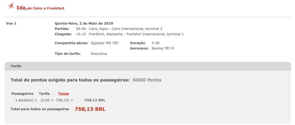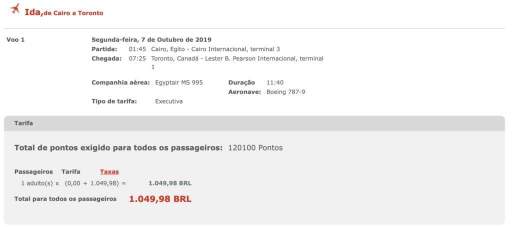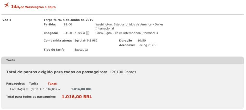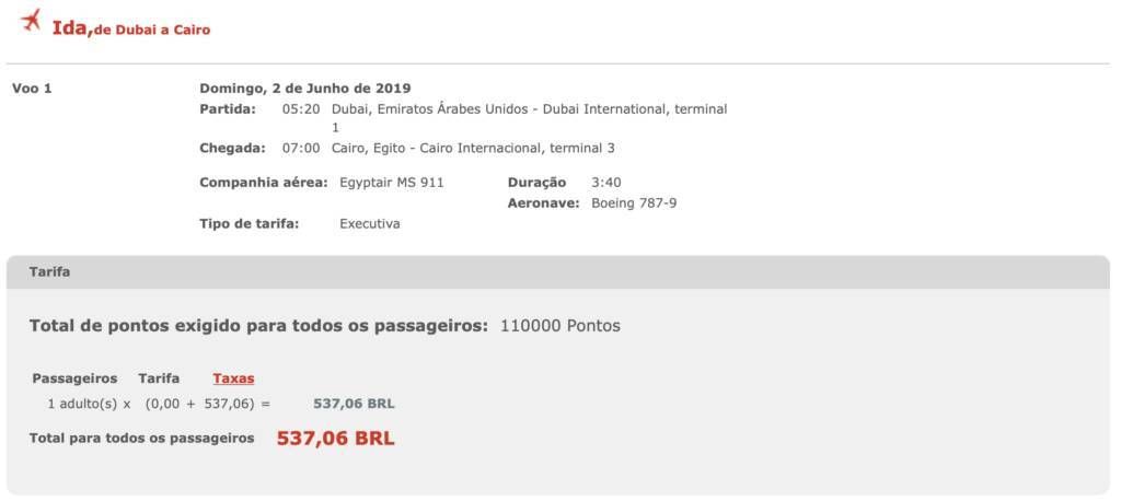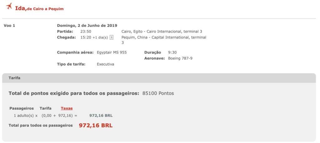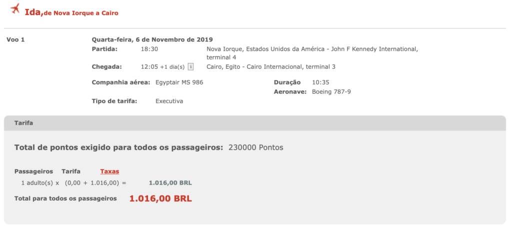 Só tem um porém, a Egyptair cobra taxa de combustível nos resgates, e elas podem ser bem salgadas.