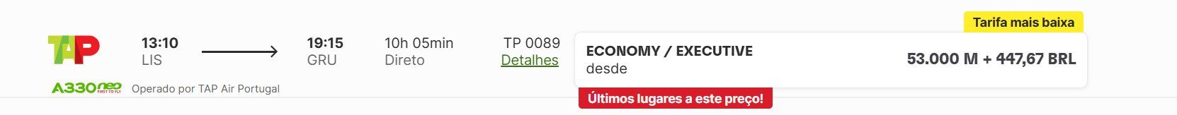 Alerta de oportunidade! 🚨Em nossas pesquisas, encontramos passagens aéreas no TAP Miles&Go por 53 mil pontos + taxas o trecho saindo de São Paulo, Rio de Janeiro e Recife. Encontramos também trechos para voar da Europa para o Brasil pelo mesmo valor. Confira!