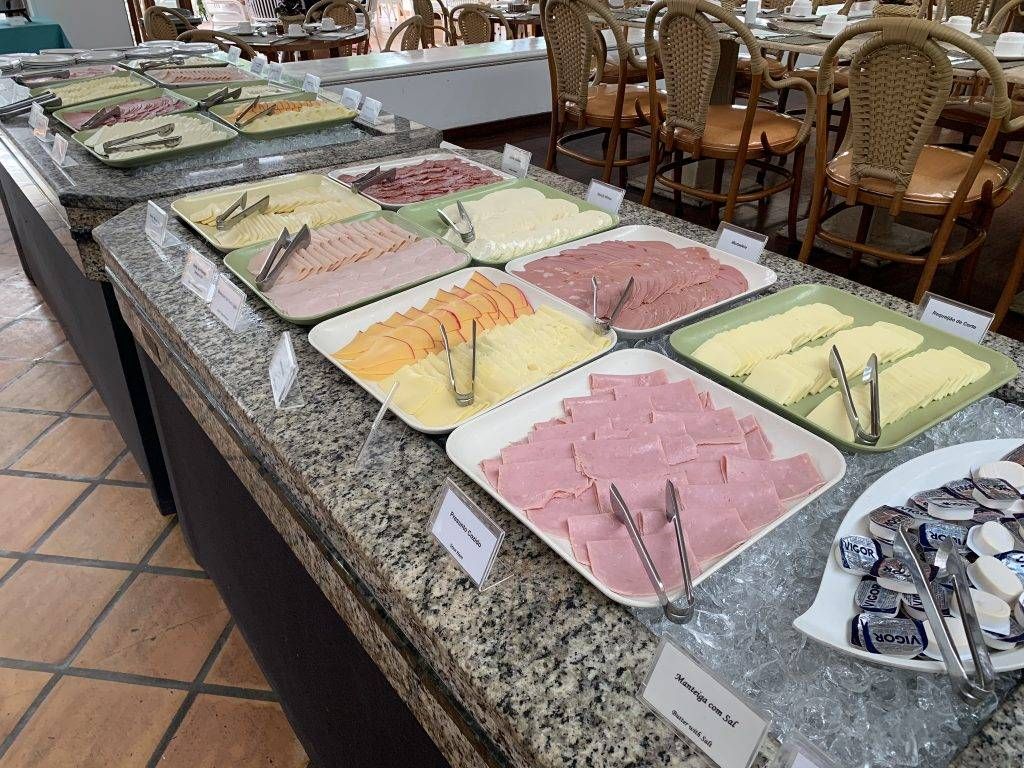 Os almoços podem ser feitos ou nesse mesmo restaurante ou no restaurante da praia. No principal, há sempre opções de massas, uma carne, um peixe, legumes e vegetais, uma mesa de salada com muita opção, pães, uma estação de grelhados e uma estação de “pratos do dia” que costumam ser mais elaborados (como uma moqueca, um arroz de pato, uma costela… e por ai vai!). Ah, e tem sobremesa pra ninguém colocar defeito! O pudim de leite sempre foi nosso favorito.