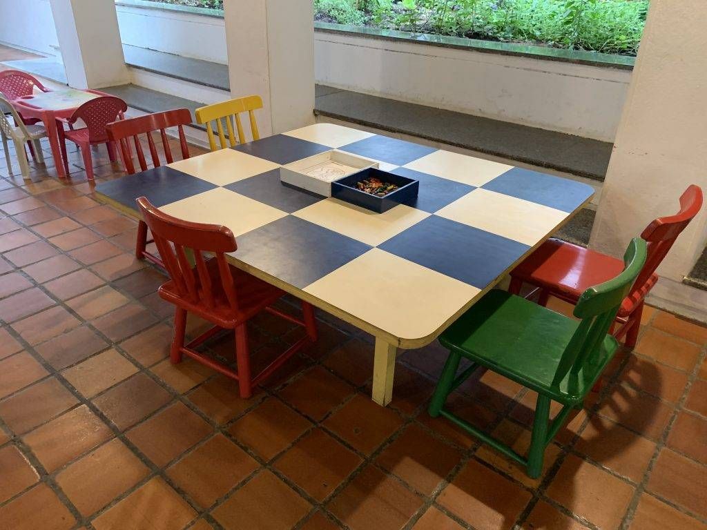 No meio da tarde, como se já não houvesse comida suficiente por todos os lados, é servido um “chá da tarde” com direito a lanchinhos doces e salgados. E na copa dos bebês há sempre frutas disponíveis, caso alguém queira dar uma banana ou uma maçã para o filho.