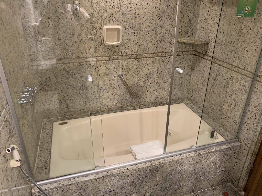 Por outro lado, construído na década de 80, ele sente um pouco o efeito do tempo: há uma renovação em andamento, o que significa que alguns quartos já foram modernizados – mas outros pontos relevantes, como a enorme piscina, ainda não foram tocados, o que é bastante perceptível.