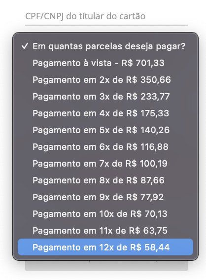 Além do desconto, você pode parcelar sua compra em até 12x sem juros nas bandeiras Elo, Visa, Amex e Mastercard. Confira: