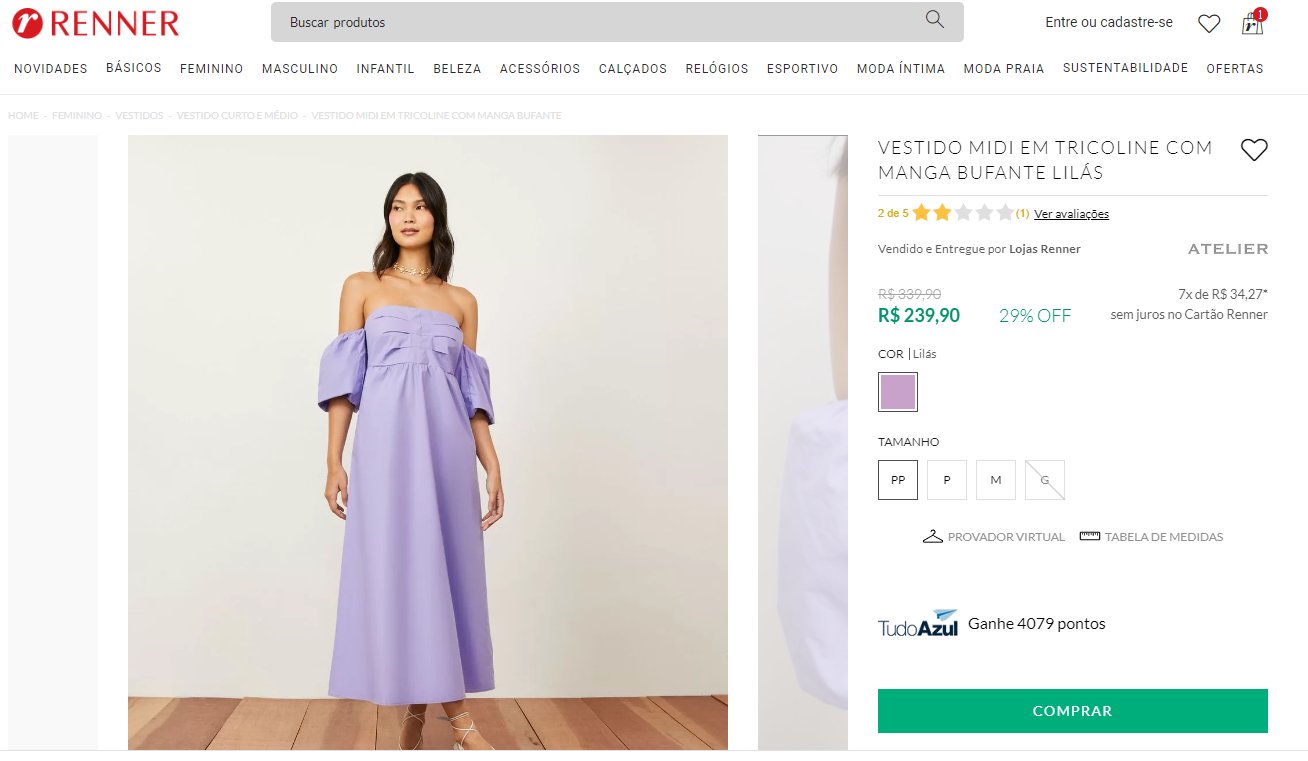 - Ao entrar no site da Renner, você será informado sobre a oferta de até 17 pontos por real gasto;