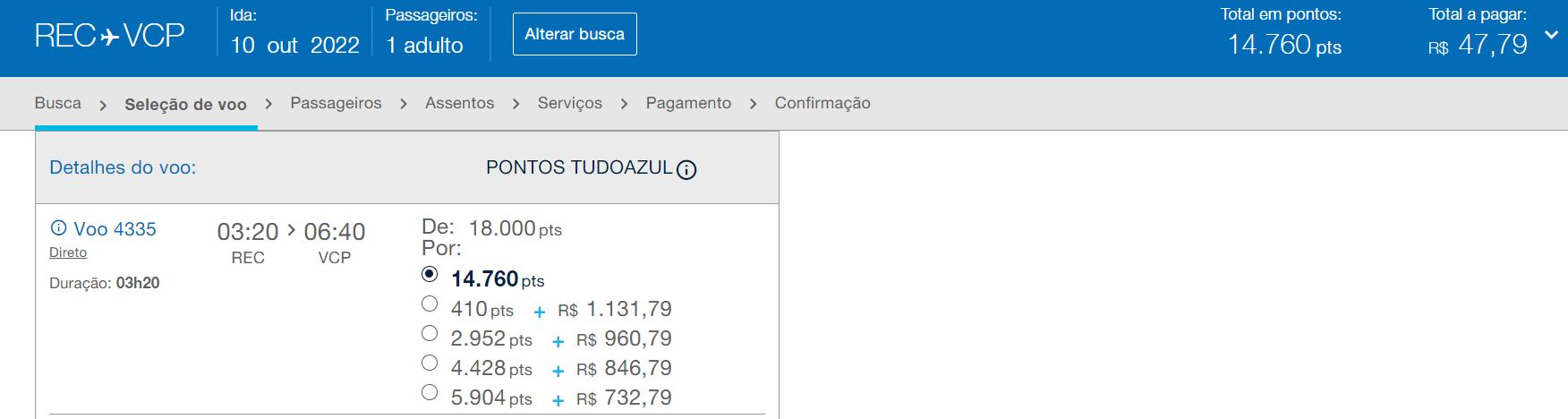 Confira abaixo um exemplo de resgate para quem é elegível aos 18% de desconto por ser Safira. Repare que a passagem que tem um custo de 18.000 pontos o trecho, está saindo por 14.760 pontos, ou seja, um desconto de 18%.
