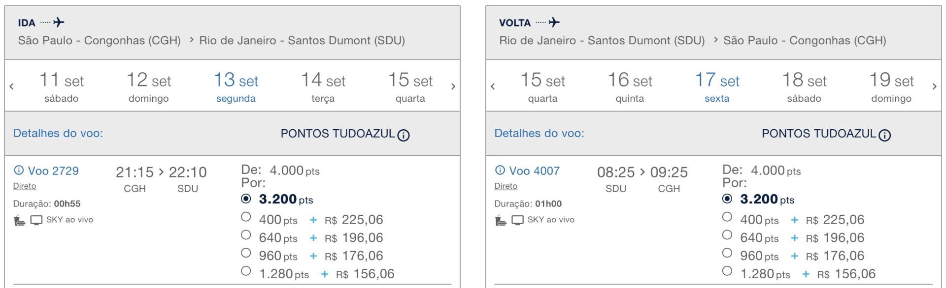 São Paulo (CGH) x Rio de Janeiro (SDU) – (ida e volta)