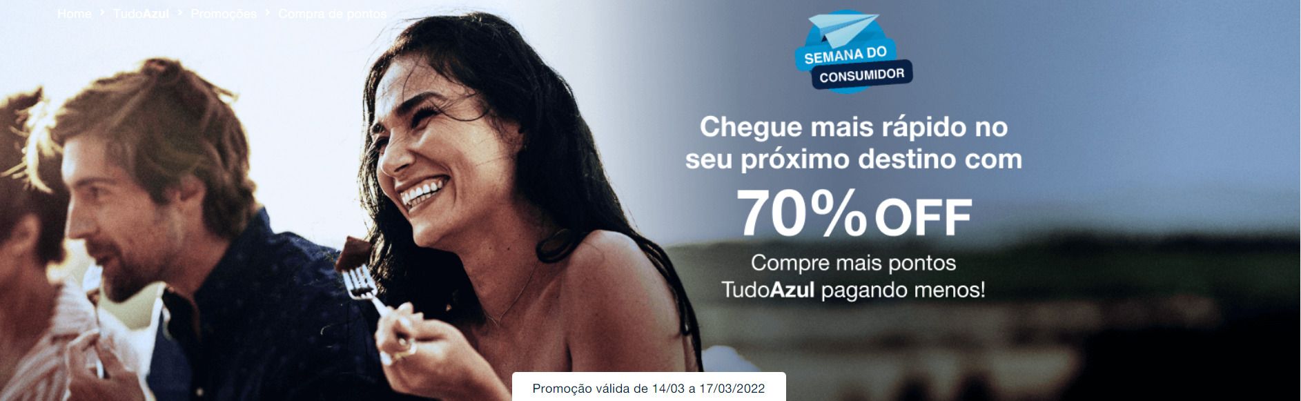 - 70% de desconto: Clientes Clube TudoAzul ou Diamante, Safira ou Topázio;
