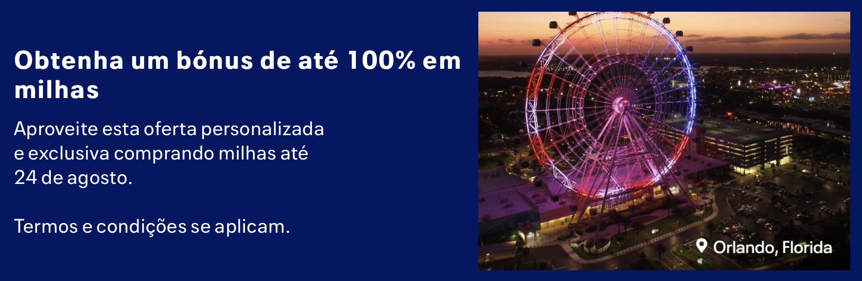 Durante o período promocional, você poderá comprar as milhas com até 100% de bônus. Veja abaixo os detalhes: