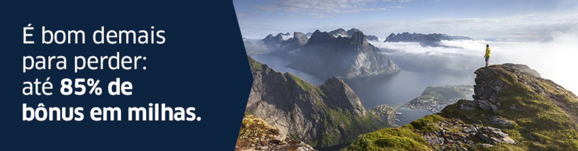 - 85% de bônus – compre de 30.000 a 94.000 milhas