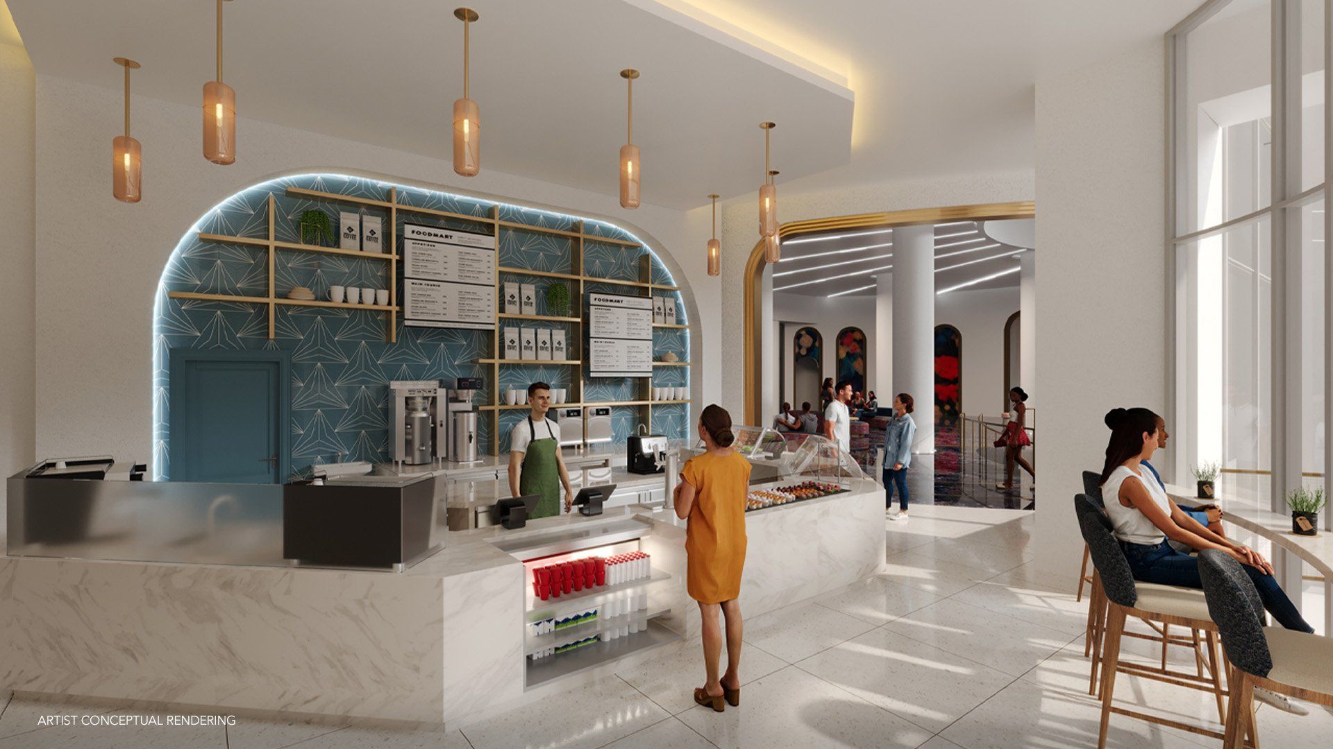 - Aurora Market: cafeteria e mercado contemporâneo, com cafés recém torrados, itens para viagem e opções de lanches e sobremesas, de manhã e à noite;