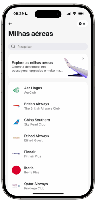 Entre os parceiros disponíveis para transferência de pontos estão: Iberia Club, The British Airways Club, Qatar Airways Privilege Club, TAP Miles&Go, Finnair Plus, Turkish Airlines Miles&Smiles, Aer Lingus AerClub, Vueling Club, SAS EuroBonus e Etihad Guest. Para transferir, basta acessar a aba “RevPoints” na página inicial e selecionar um dos parceiros disponíveis.