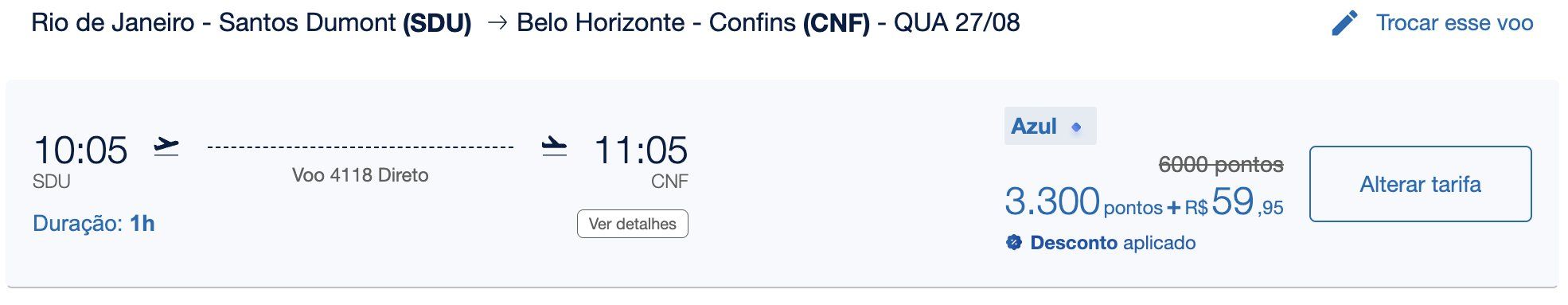 Rio de Janeiro (SDU) x Belo Horizonte (CNF) – Agosto