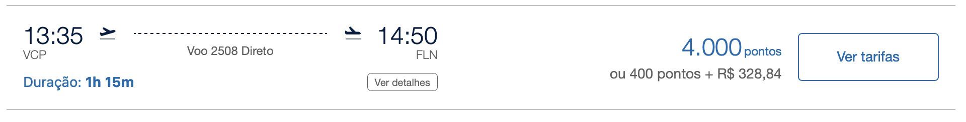 Trecho vendido por 4.000 pontos Azul + R$ 71,84 de taxas
