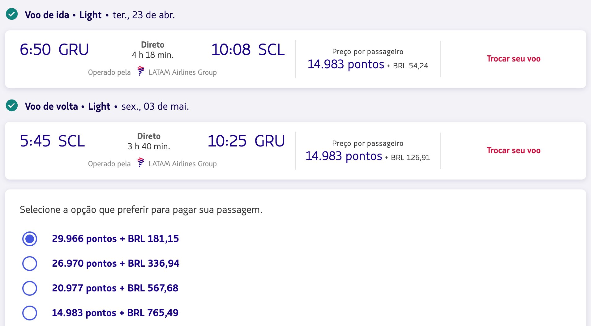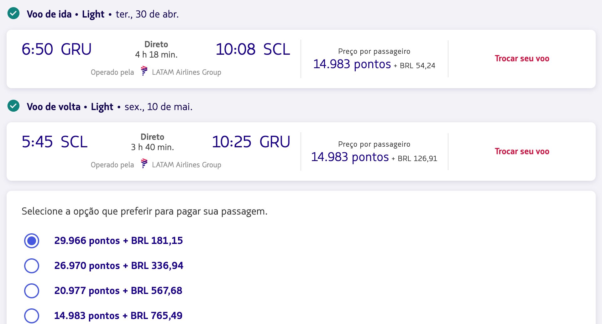São Paulo (GRU) x Santiago (SCL) – 30 de abril a 10 de maio