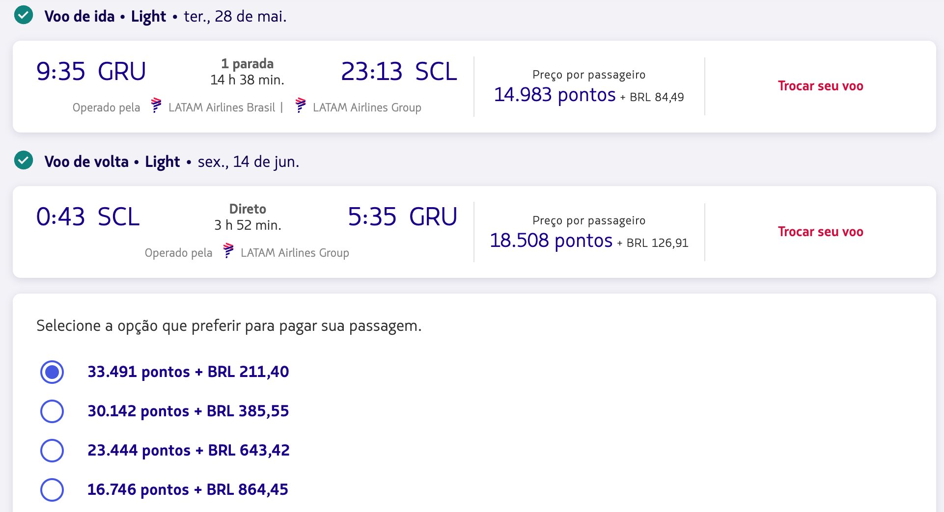 São Paulo (GRU) x Santiago (SCL) – 28 de maio a 14 de junho