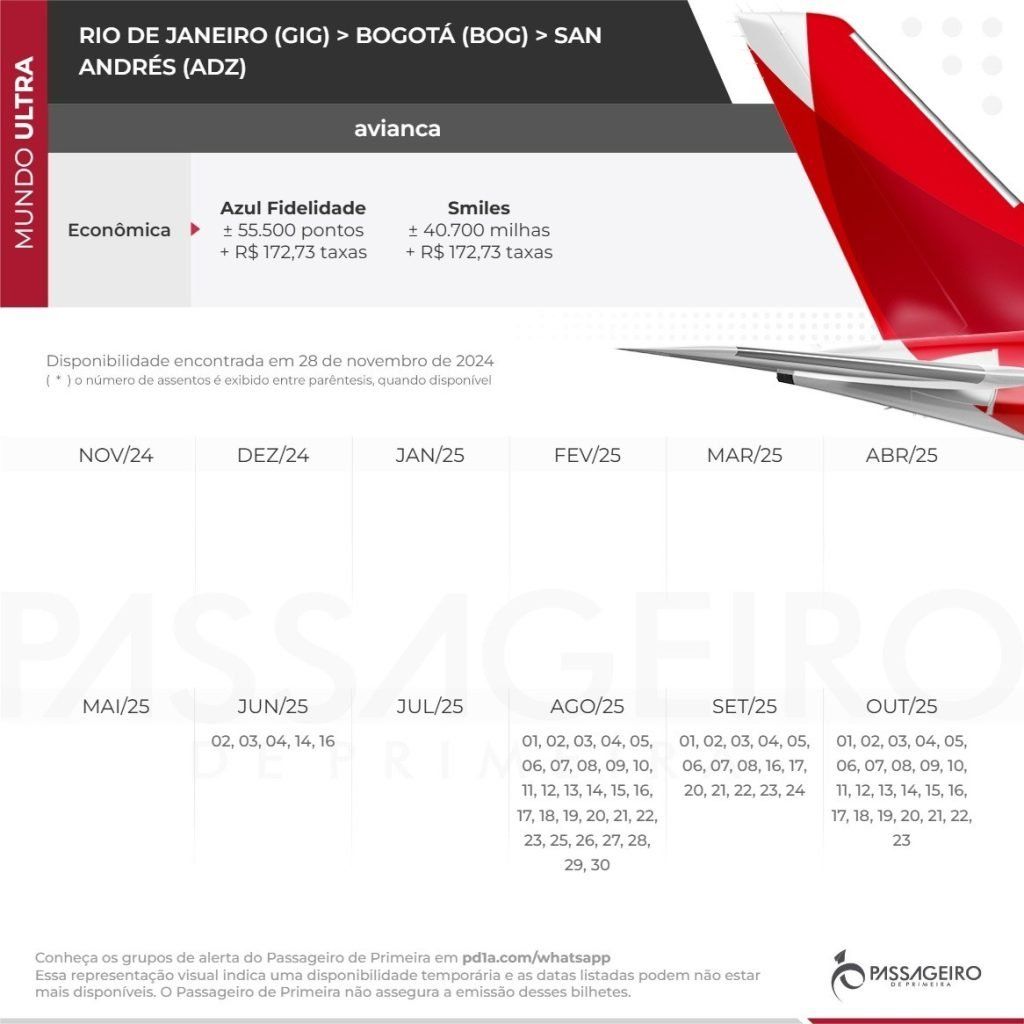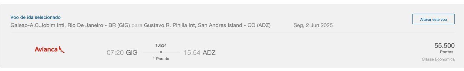 • ⁠Rota: Rio de Janeiro (GIG) > San Andrés (ADZ) – com conexão em Bogotá (BOG)