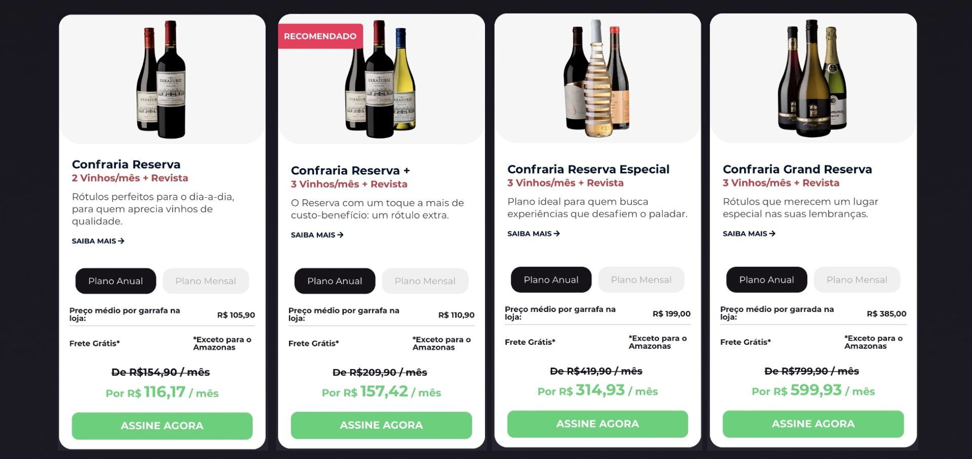 *no plano Reserva a garrafa extra é enviada a cada 2 meses.