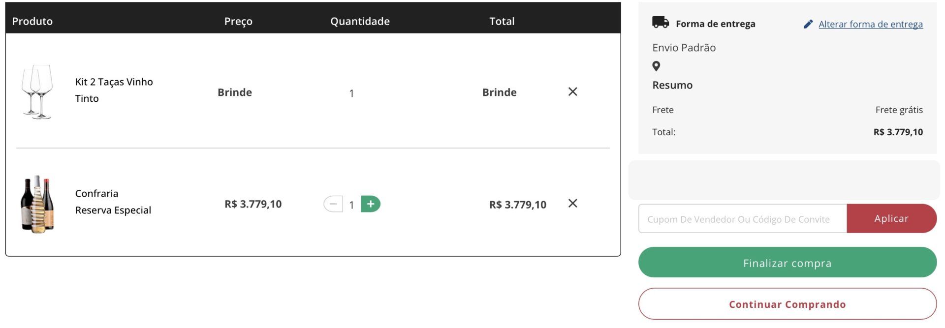 - O total valor a ser pago pode variar de acordo com os vinhos selecionados na troca.