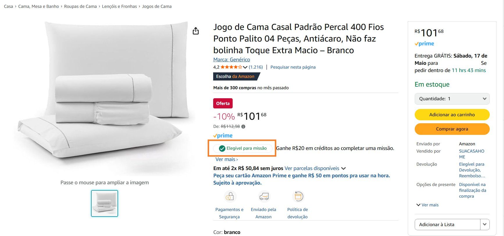 Note também que, para ajudar a completar o desafio de modo correto e dentro dos requisitos exigidos, é exibido um selo junto ao item indicando que este produto é “Elegível para missão”: