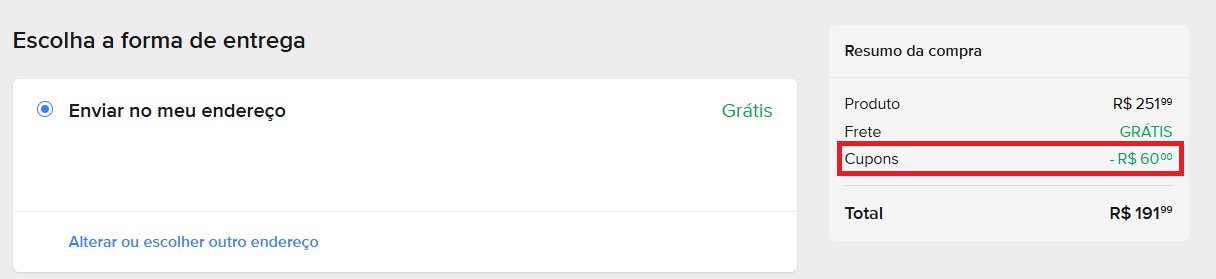 Para adicionar o cupom, basta fazer o seguinte passo a passo: