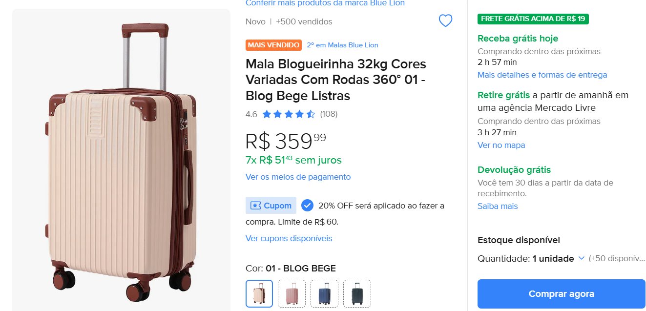 Veja abaixo um exemplo de item no Mercado Livre que permite a aplicação do cupom: